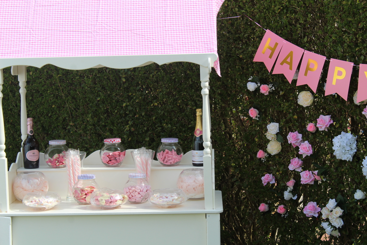 Full hire of Candy Cart plus all jars, bowls, scoops, bags and decoration. You supply your own sweets.